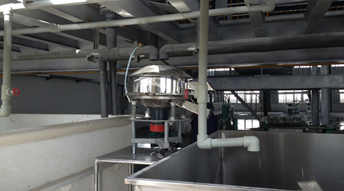 安徽滁州某絹云母篩分現(xiàn)場,漿液專用振動篩,目前使用效果良好,客戶很滿意!