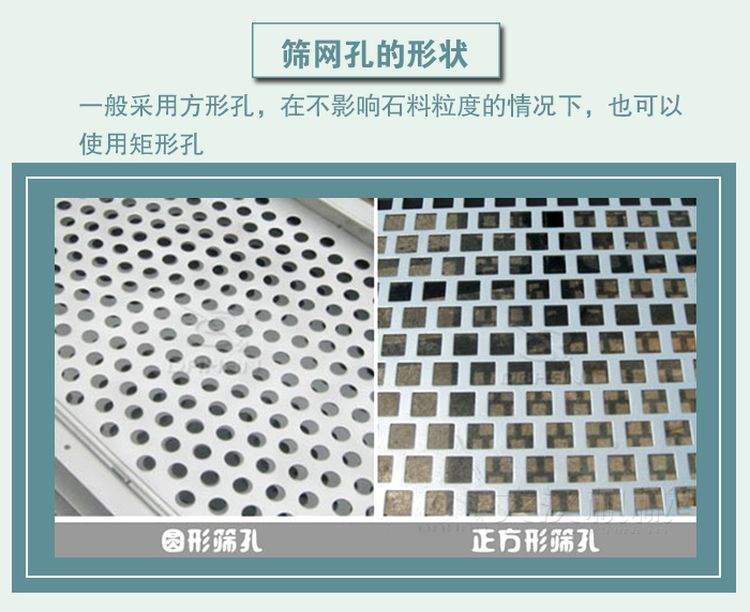 篩網一般采用方形孔,小網眼是用來防止堵塞孔網的,如果孔塞嚴重,在不影響石料粒度的情況下,也可以使用矩形孔。但是,從使用周期的角度來看,必須注意網眼的方向,否則會影響篩網的使用周期。