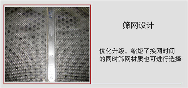 3,篩網設計進行優(yōu)化升級,縮短了換網時間的同時篩網材質也可進行選擇。