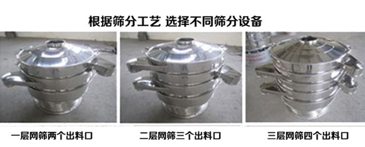 任何顆粒、粉末、粘液一定范圍內(nèi)均可篩選。篩分細(xì)至500目或0.028mm, 過濾小可至5微米。分級篩選,可篩一至五層篩網(wǎng),能同時進(jìn)行二至六個等級的分選或過濾。