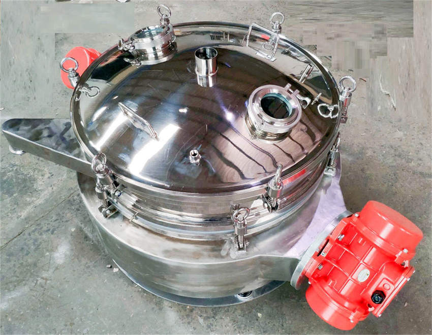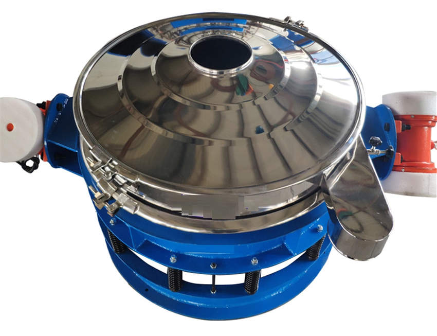 直排篩的作用原理是振動(dòng)電機(jī)軸上下端的兩組偏心塊(不平衡偏心塊),將振動(dòng)電機(jī)的旋轉(zhuǎn)運(yùn)動(dòng)變?yōu)樗?、垂直、傾斜以及離心作用的多作用力重疊,再將這種作用力傳遞給篩面。改變上下偏心塊的相位角和可以改變激振力的大小和物料的運(yùn)動(dòng)軌跡。